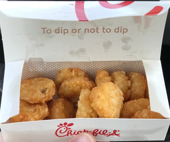 Normally, I’d say CFA has the best hash browns; but, this morning, I was disappointed. The CFA in Johns Creek, Ga, McGinnis Ferry and Peachtree Parkway, let me down.