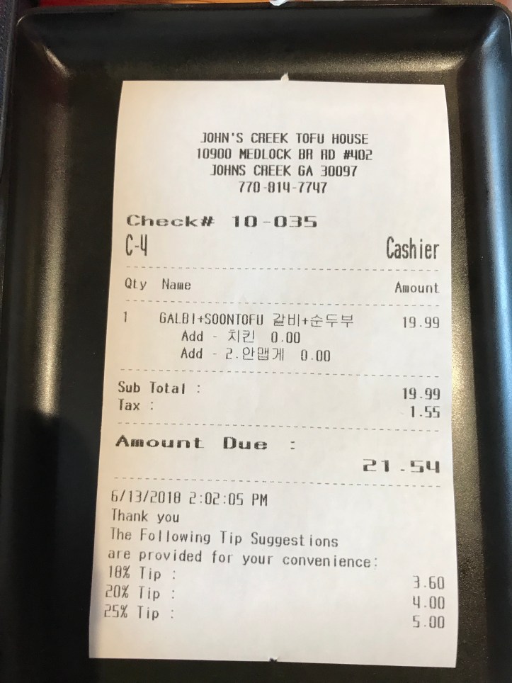 I think I ordered the Korean bbq with tofu soup combo. For the soups, you have a choice of things to add in. I added chicken.