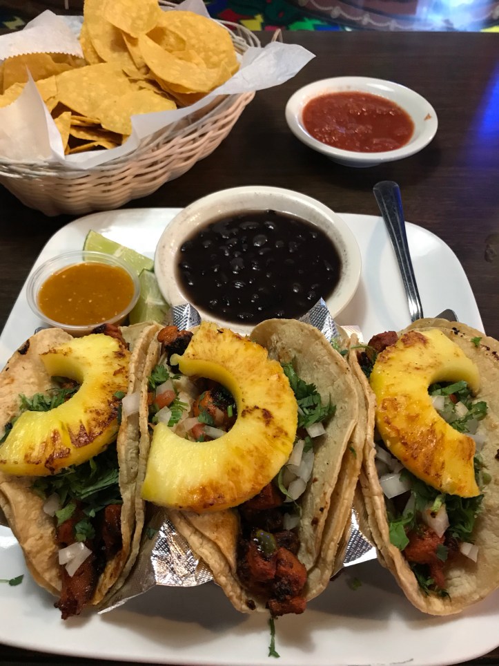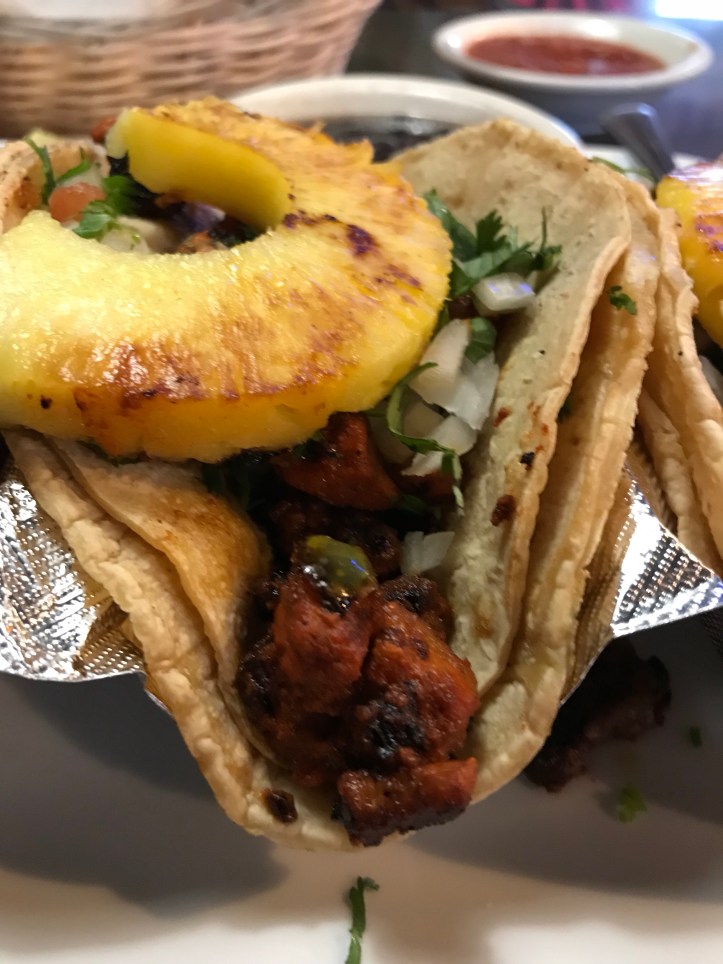 The decoration and environment are inviting and festive. The staff was friendly from the second I walked in the door. (A sharp contrast to the car rental lady next door.) The waitress arrived at my table promptly and with a smile. I asked what’s good that’s not on the menu. Language barriers what they are, she just told me how much she really loves the tacos al pastor that this cook makes. Easy. Let’s just do that.