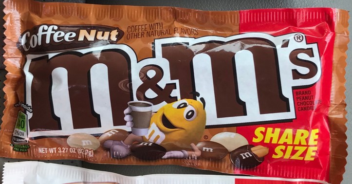 Better yet, replace the nut with an actual coffee bean. People love chocolate-covered coffee beans. Make it one step better and coat it in m&m shell goodness! Charge more. Morale more money.