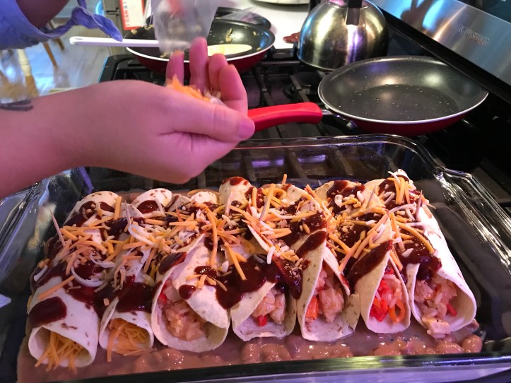 We had some extra cheese and a few extra tortillas, so I made three extra.