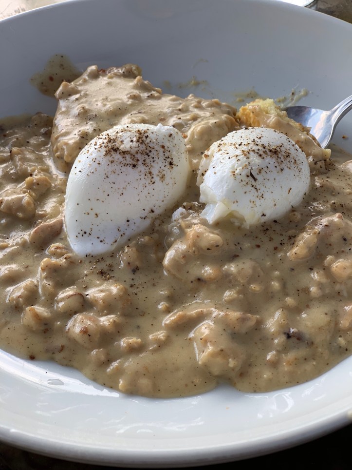 The chicken sausage gravy has quite a kick, but damn it was all so good.