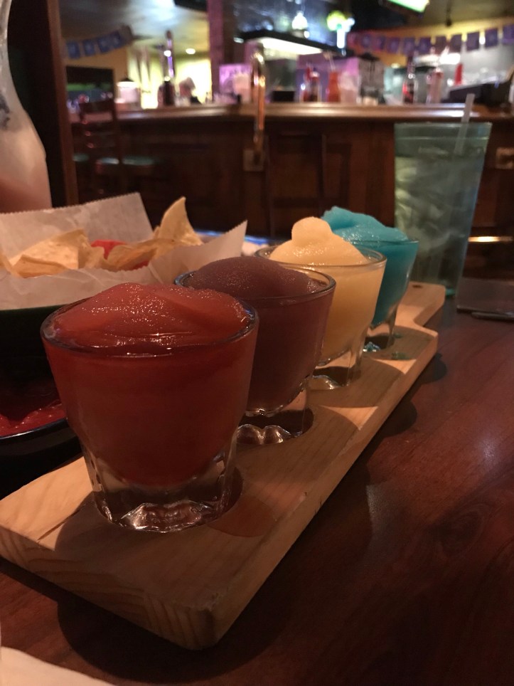 October 20, 2018 McGuido Hacienda: flight of margaritas Mishawaka, IN There was a blue and an orange and two reds – don’t ask what the flavors were… Share this: Share on X (Opens in new window) X Share on Facebook (Opens in new window) Facebook Share on LinkedIn (Opens in new window) LinkedIn Share on Tumblr (Opens in new window) Tumblr Like Loading... Related