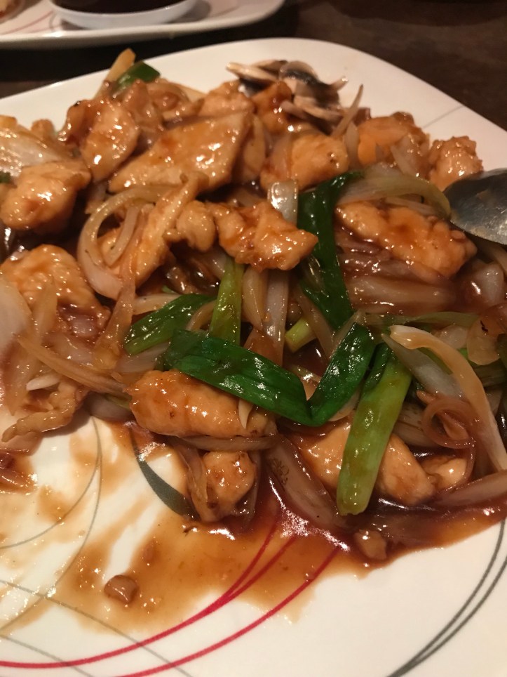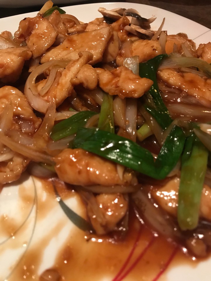 Stir fry in brown sauce with yellow & green onions with a splash of rice cooking wine.