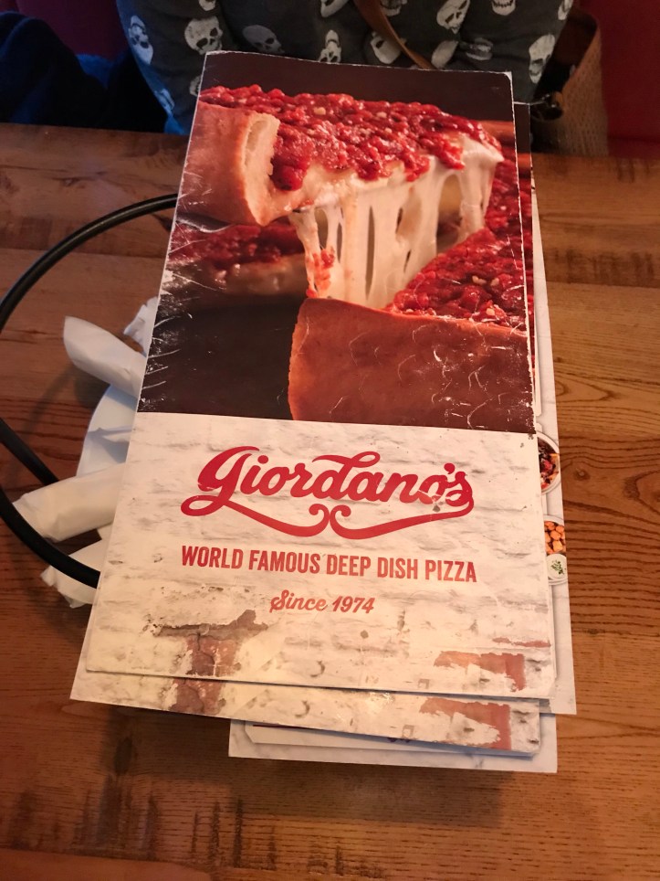 After watching Jon Stewart Raul against it this morning on the face space, my wife says there’s a Giordano’s in Indy on our way home. After a moment’s hesitation, I said “hell yeah!”