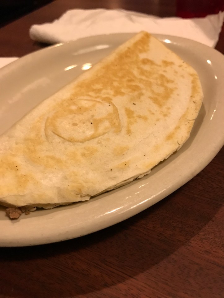 February 10, 2019February 12, 2019 McGuido El Carrizo: beef quesadilla Columbus, Ga Yeah….don’t. Cheese was only in the center. #beef #cheese #quesadilla #mexican #butter Share this: Click to share on X (Opens in new window) X Click to share on Facebook (Opens in new window) Facebook Click to share on LinkedIn (Opens in new window) LinkedIn Click to share on Tumblr (Opens in new window) Tumblr Like Loading... Related