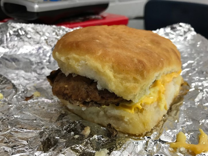 This time was on point. Egg: good. Cheese: good. Biscuit: good. Steak: country fried in country frying magic. I could still taste the steak through the frying. Usually, you loose the steak flavor to the fry. Not this time.