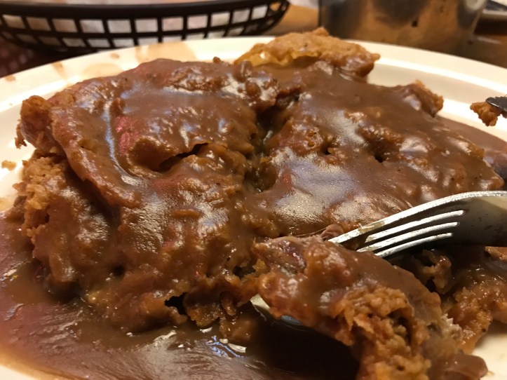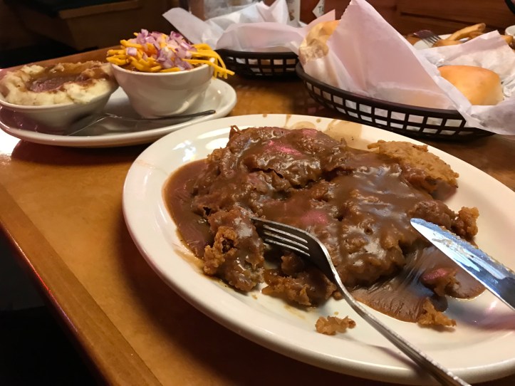 April 24, 2019March 30, 2019 McGuido Texas Roadhouse: country fried steak Brown gravy, mashed potatoes, chili. Mostly better than it looks. Don’t get the chili. Share this: Click to share on X (Opens in new window) X Click to share on Facebook (Opens in new window) Facebook Click to share on LinkedIn (Opens in new window) LinkedIn Click to share on Tumblr (Opens in new window) Tumblr Like Loading... Related