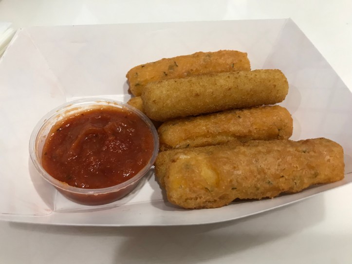 The mozzarella sticks were standard, like you’d get anywhere. They were served at the appropriate temp but quickly cooled. The tomato sauce was cold. It wasn’t looking good.