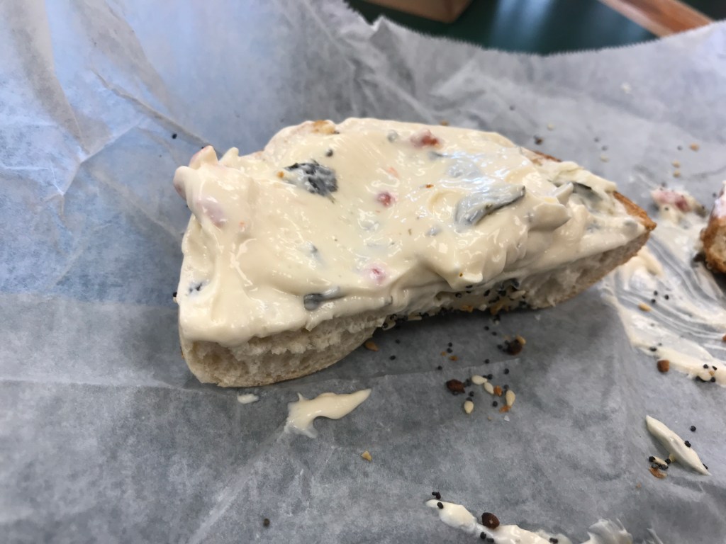 Also, everything bagel with spinach and toaster pepper cream cheese