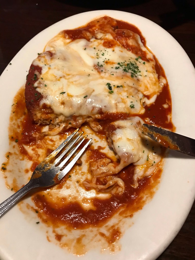 I like that they served the pasta on the side, so it didn’t get destroyed while I cut my bites off the cutlet.
