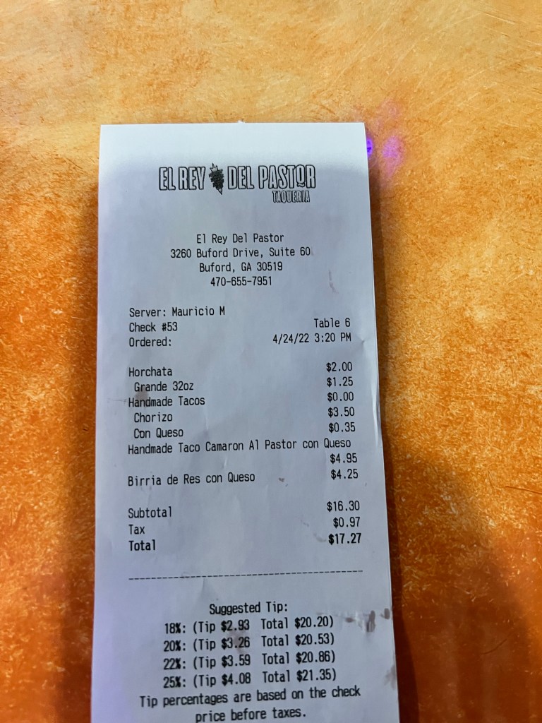 Starting off, the service was….interesting. Menu as the seat you. Two minutes to get chips and salsa. Fair. Lots of people working. They are busy. I’m happy for them. Lots of people working. Three minutes after, they bring me food. Not my food. I haven’t ordered. Food leaves. Four more minutes, a drink order is taken and the guy runs away before I can say I’m ready to order. 90 seconds he brings the drink. Cool. Then disappeared as quick as the drink appeared. Three more minutes to ask if I was ready. The menu has been in the “I’m ready to order” position for quite some time now, before you asked about the drink.