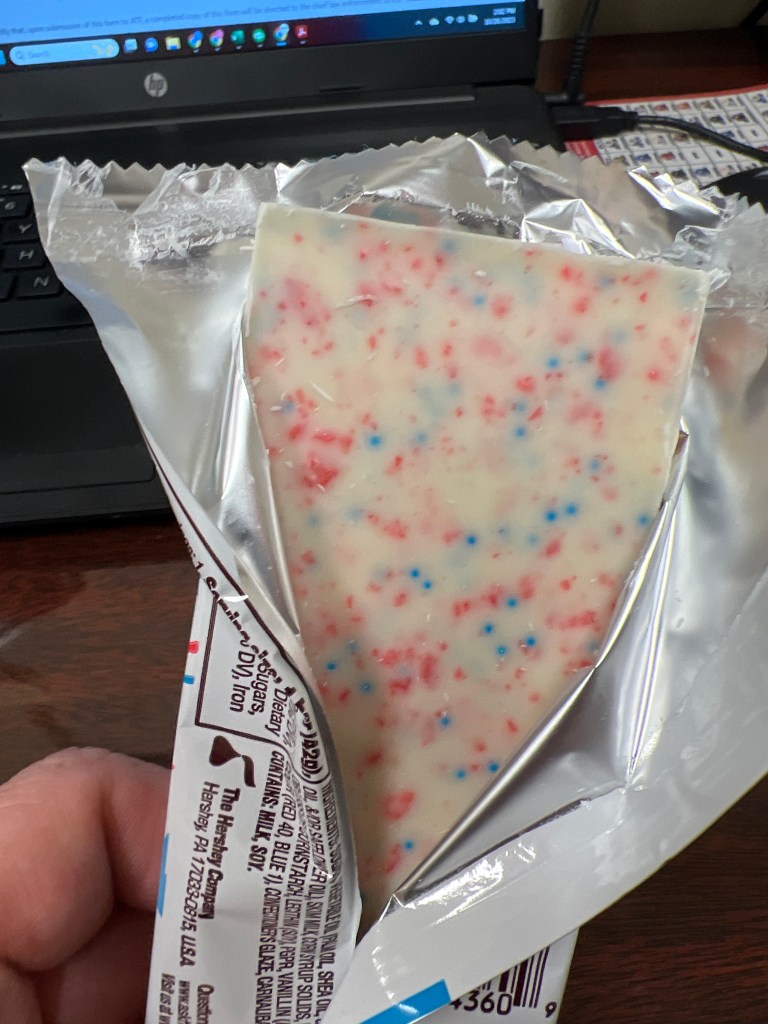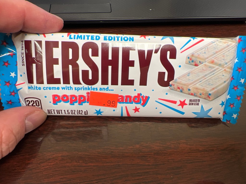 October 26, 2023 McGuido Hershey’s pop rocks white chocolate There is absolutely no call for this, no reason for it to exist. None. But it works. Share this: Share on X (Opens in new window) X Share on Facebook (Opens in new window) Facebook Share on LinkedIn (Opens in new window) LinkedIn Share on Tumblr (Opens in new window) Tumblr Like Loading... Related