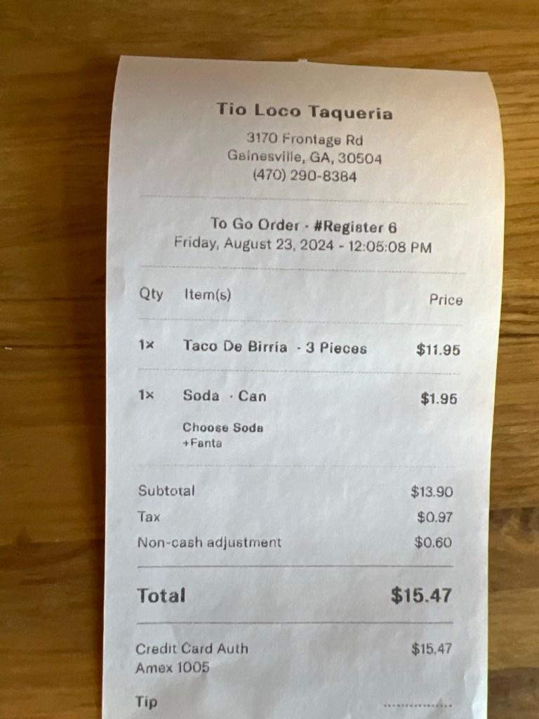 The order is supposed to be three tacos. They made an extra and asked if it was ok if they give it to me. I should have said no. The first one was perfection. The second was great. The third one was really good. The fourth one taunted me to eat it, and then, half way through, started laughing at me, “nap time!”